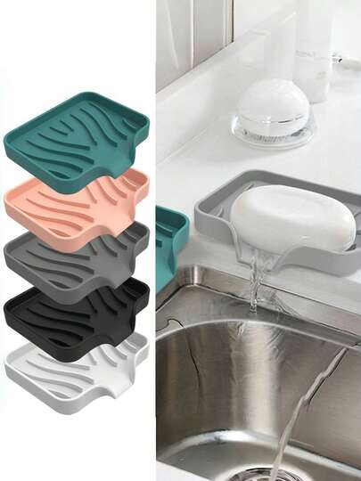 Brodark 1pc High Quality Soap Dish: Soft Silicone Soap Tray, Easy To Clean, For Shower, Bathroom, Kitchen And Bathtub, Keeps Soap Dry And Extends Soap Lifespan, Available In Green/Pink/Grey/Black/White - Multicolor - View 1