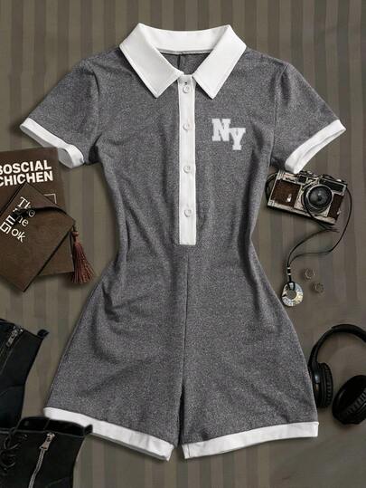 5. Bộ áo liền quần cổ polo phối màu nâu trắng tương phản, phong cách retro sinh viên gợi cảm, dáng ôm sát, thích hợp mặc hàng ngày và hẹn hò.