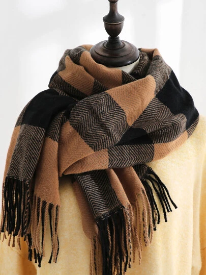 Buffalo Plaid Pattern Fringe Trim Scarf - Multicolor - View 1