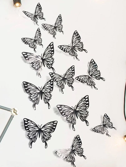 12pcs Paper Butterfly Sticker, Modern 3D Hollow Out Butterfly Sticker For Home - Rose Gold - View 1