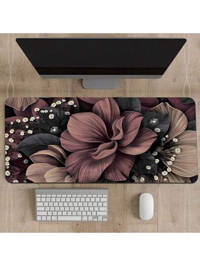 Elegant Floral Pattern Desk Mat Large Non-Slip E-Sport & Office Mouse Pad With Durable Stitched Edges Perfect For Professionals Gift For Girls Daughters Women,For School Supplies,Back To School Gaming Mouse Pad - Black - View 1