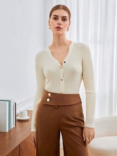 BizChic Button Front Ribbed Knit Cardigan - Apricot - View 1