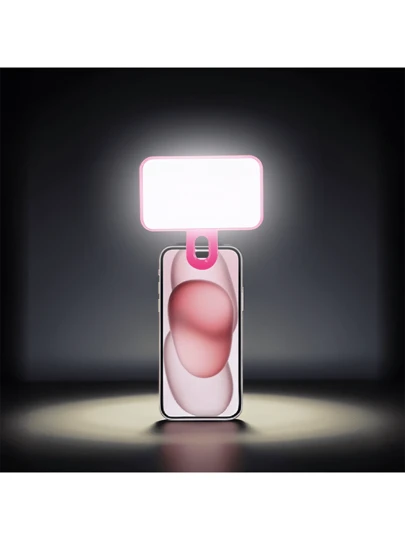 Portable Selfie Fill Light With Clip, Suitable For Phone Camera, Video Conference, 3 Lighting Modes, Rechargeable, Compact, Fit For Laptop/Phone/Tablet/Zoom Call/Makeup, Ideal For Selfie And Live Streaming, Portable Fill Light - Rose Pink - View 1