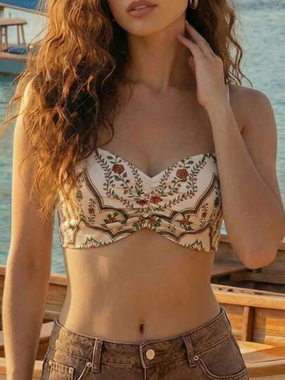 CAJUNI Tropical Vacation Tropical Chintz Cute Blouse - Khaki - View 1