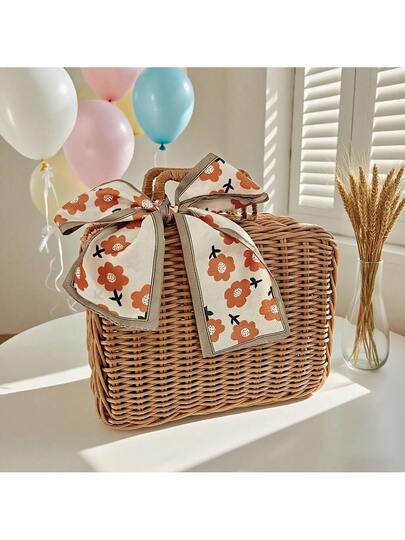 CASEGRACE 1pc Handwoven Rattan-Style Storage Basket, Vintage Wedding Favor Box, Valentine's Day & Mother's Day Gift Set, Cosmetic Organizer With Handles, Birthday Present Holder, Shelf Baskets - Brown - View 1