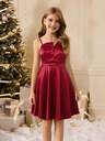 Tween Girls' Round Neck Sleeveless Dress With Bow Design, Butterfly Textured Fabric, & Elegant For Party, Wedding, Bridesmaid