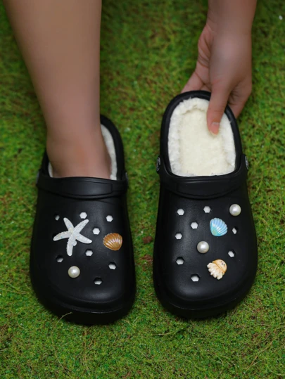 CIVHOM Women's Plush-Lined Slip-On Clogs - EVA Slippers With Fluffy Villi, Cozy Fabric Lining, For Cold Weather, Indoor, Outdoor And Parties Use, Ideal Gift For Christmas, Locking Of Foot Temperature, Winter Footwear - Black - View 1