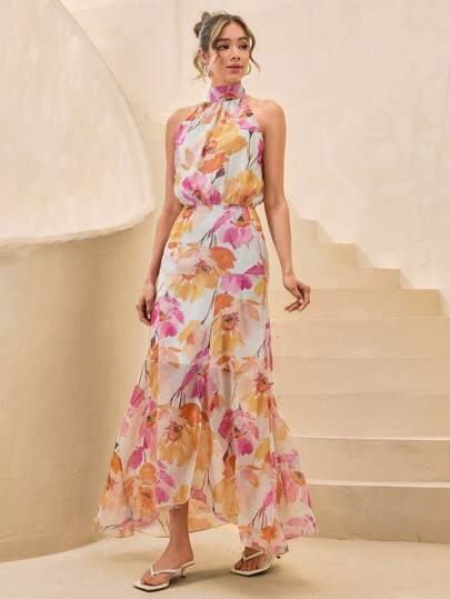 CLARA VERO Women Floral Printed Detailed Backside Zipper Long Dress Woman S Summer Clothes Women Summer Clothing Women S Clothes - Multicolor - View 1