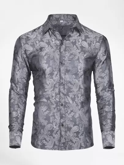 CLOUDSTYLE Men Paisley Print Shirt - Dark Grey - View 1