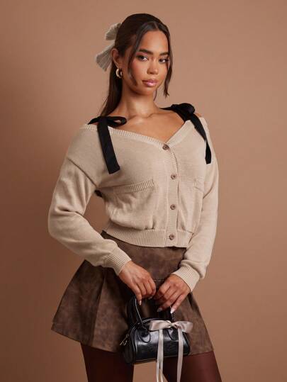COSMINA Women's Apricot Tie-Front Cardigan, Autumn/Winter - Apricot - View 1