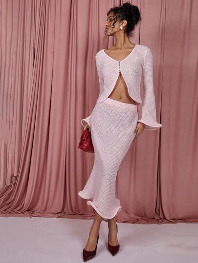 COSMINA Women's Solid Color Fish Tail Hem Slim Fit Elegant Skirt - Baby Pink - View 1