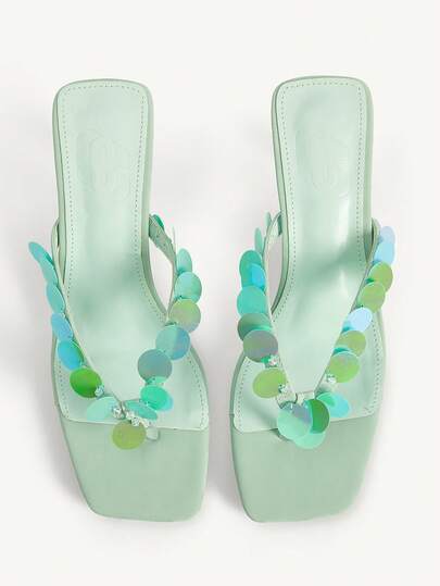 CUCCOO CHICEST Women's Sequin Design Fashion Daily Wear Slip-On High Heel Sandals - Green - View 1