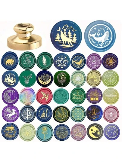 CYFUN DESIGN 1PC Feather/Wolf/Hummingbird/Moon/Fireworks/Swallow Wax Seal Brass Stamp Head NO Wooden Handle Vintage Brass Removable Seal Stamp For Wedding Party Invitations Envelopes Cards Gift Packing - Gold - View 38