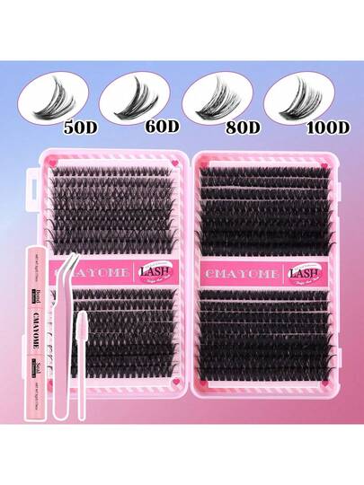 200 Pairs D Curl Fluffy Volume Single Cluster False Eyelashes 10-16mm Wispy Natural DIY Individual Extension Lashes Kit For Women Girls Cruelty-Free Reusable Easy To Apply Mixed Lengths Long Lasting Professional Makeup Set - DIY-jMS-188+Pink Three-piece Set - View 1