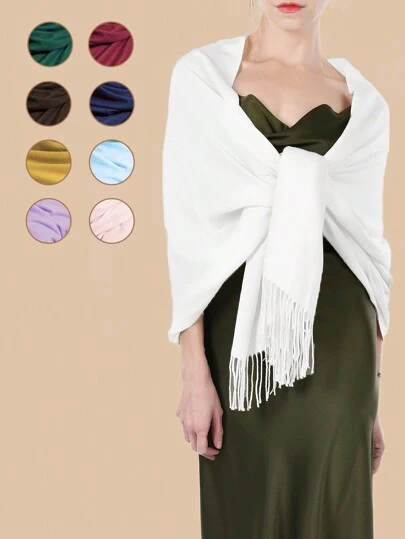 1pc Women Solid Color Silky Pashmina Shawl Wraps Soft Bride Bridesmaid Shawl For Formal Evening Party Wedding Accessories Women - A - View 28