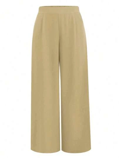 Calvaya Plus Size Solid Color Casual Pants, Fashionable For Summer - Khaki - View 1