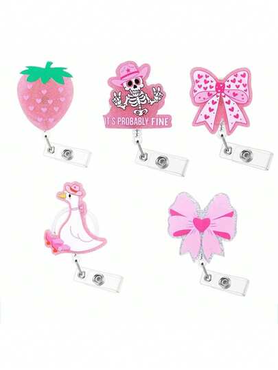 1pc Cute Pink Strawberry Nurse Badge Reel, Personalized ID Name Badge Holder With Retractable Clip, Cute Work Badge Clip For RN CNA LPN LVN Medical Worker Doctor Teacher Dietitian Nursing Student - Multicolor - View 11