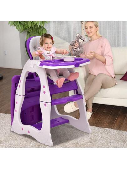 3 In 1 Baby High Chair Convertible Play Table Seat Booster Toddler Feeding Tray Purple - Purple - View 1