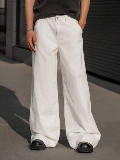 Manfinity Hypemode Plus Size Men's Casual Versatile Solid Color Wide Leg Jeans - Apricot - View 1