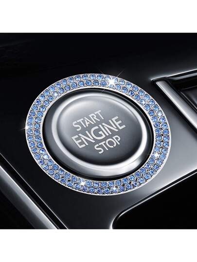Car Engine Start Stop Button Protective Cover And Rhinestone Ring Sticker For Button And Ignition Key Decoration - Blue - View 1