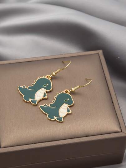 Cartoon Animal Drop Earrings - Dark Green - View 1