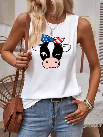 SHEIN LUNE Cartoon Cow Print Tank Top - White - View 1