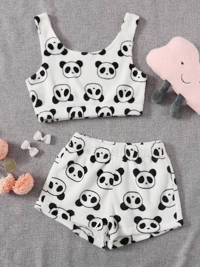 Cartoon Graphic Flannel Fluffy Pajama Set, Fall Winter Clothes, Cozy - Black and White - View 5