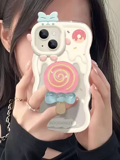 Cartoon Graphic Phone Case With Pop Out Phone Grip - Multicolor - View 1