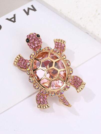 Cartoon Tortoise Brooch Pins Full Rhinestone Inlaid Green White Pink Turtle Badge Lapel Pin Jewelry Cute Collar Suit Scarf Ornament Accessories Souvenir Gift Marine Animal Brooches Trinket - Gold - View 1