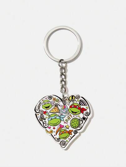 TEENAGE MUTANT NINJA TURTLES | SHEIN Cartoon Turtle Print Heart Shaped Acrylic Keychain, Bag Charm - Multicolor - View 1