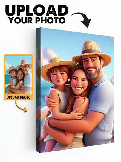 Catygift Custom Cartoon-Style Canvas Print With Uploaded Photo, Personalized Family Photo Canvas, Unique Gift For Mom, Dad, Anniversary, Home Decoration - As Shown - View 1