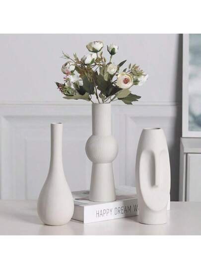 Ceramic Flower Vase, Desktop Decor For Living Room, High-End Cream Color Entrance Gifts Birthday Graduation - Beige - View 1