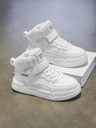 Children's Black High-Top Sports Shoes, New Shock-Absorbing Casual Skate Shoes For Boys, Fashionable & Versatile, Suitable For All Seasons - White - View 1