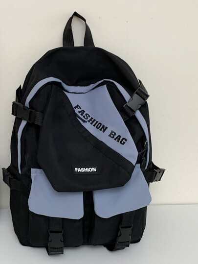 Children's Color-block Large Capacity College Style Zipper Backpack With Multiple Pockets, Suitable For Student's Daily Life And Travel - Black - View 1