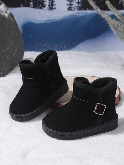 Children's Snow Boots For Boys & Girls, Black Suede Warm Thermal Lined Winter Boots With Buckle Strap, Non-Slip Rubber Sole, Waterproof Ankle Boots For Kids Toddlers, Ideal For Snowy Days, Outdoor Play, School & Daily Wear, Stylish & Cozy Footwear To Keep Little Feet Warm And In Cold Weather - Black - View 1
