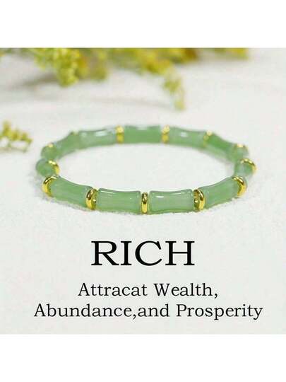 Chinese Bamboo Knot Design Bracelet With Green Artificial Crystal Beads And Gold Partition - Symbolizing Harvest, Prosperity And Good Luck, Women's Daily Wear Or Holiday Gift Bamboo Bracelet, Bamboo Knot Pattern, Exquisite Beading Craftsmanship, Festive Jewelry, Fashion Accessories, Handmade Look - LY37 - View 1