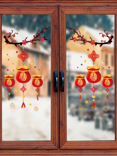 Chinese New Year Lucky Bag Print Window Sticker - Multicolor - View 1