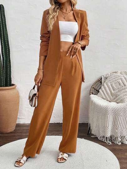 Chiquease Fashionable Professional V-Neck Women Business Suit Set - Burnt Orange - View 1