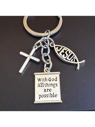 Christian Religious Keychain With Jesus And Cross Pendant - Heavy Duty Zinc Alloy, Bible Verse "Working With God, All Things Can Be Accomplished" (Matthew 19:26) - Heavy Duty Chain, Fish Symbol - Gift For Men, Women, Church, And Prayer - Suitable For Daily Faith - Sturdy Christian Pendant For Believers - Stylish Religious Accessory With Jesus Keychain And Cross Key Ring - Inspiring Christian Gift - Multicolor - View 1
