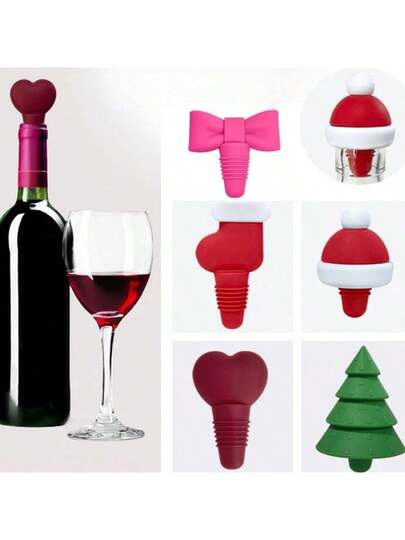 Christmas-Themed Creative Silicone Sealing Plug For Household Champagne, Wine And Red Wine Glass Bottles, Silicone Cap For Wine Bottles, Christmas Cute Decoration For Wine Bottles, Competition - Multicolor - View 1