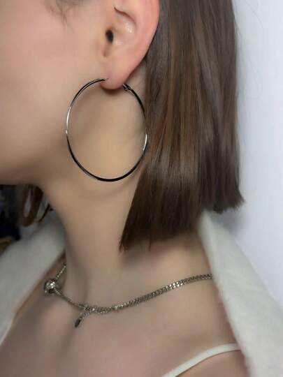 Circle Earrings/ Various Types And Sizes/ Silver Color/ Stainless Steel - Pattern2/silver - View 1