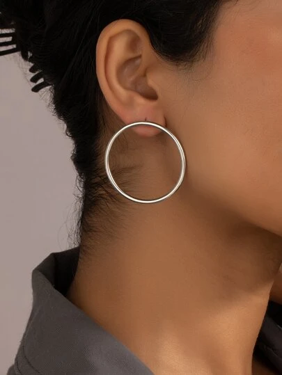 Circle Stud Earrings - Silver - View 1