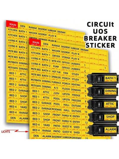 Circuit Breaker Sticker, 129pcs/set, Label Fuse Box Identification Reminder Sticker, Convenient Identification Sticker - Yellow - View 6