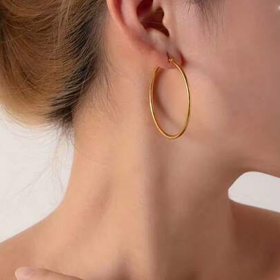 Classic Simple Geometric Round Big Stainless Steel Hoop Earrings For Women Exaggeration Circle Bride Earrings Jewelry Accessory - Gold - View 1