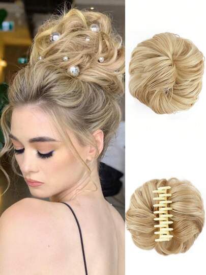 nimoki Claw Clip Messy Bun Hair Piece for Women Heat Resistant Synthetic Hair Buns 6 Inch Curly Chignon Hair Bun Extensions Wavy Tousled Updo Hair Buns Claw Clip Ponytail Hairpieces for Daily Use(Blonde) - Gold - View 7
