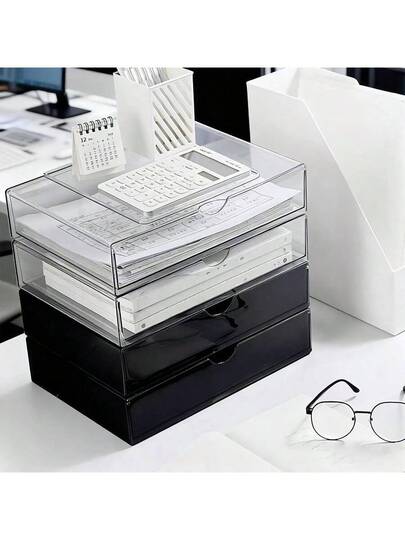 Clear A4 Portable Project Box With Handle Stackable PET Desktop Storage Tray For Office Stationery Scrapbook Paper - Multicolor - View 1