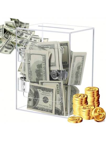 Clear Acrylic Piggy Bank For Adults, Large And Sturdy Money Saving Jar For Cash Coin With Key Change Jar, Saving Box - Clear - View 1