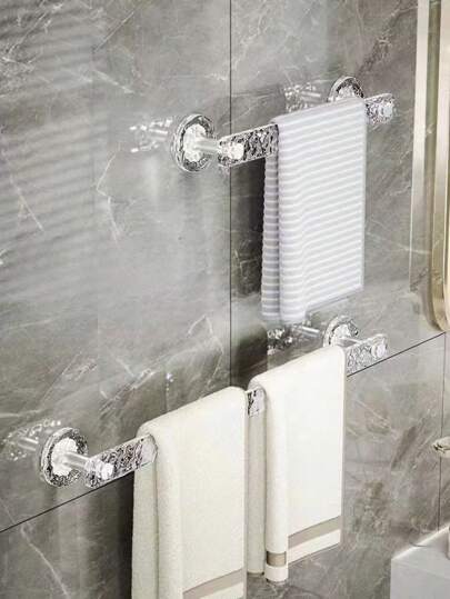Clear Adhesive-Free Acrylic Bathroom Towel Rack And Slipper Hanger With Drainage, Space-Saving, Multiple Combinations Available For Kitchen, Bathroom, And Toilet Organization. - White - View 1
