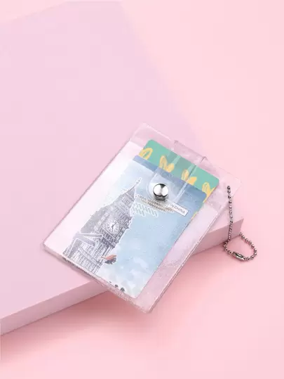 Clear Snap Button Card Holder Lightweight Portable,Credit Card,ID Card White-Collar Workers,For Female,For Women Holiday,For Anniversary,For Birthday Gift Gift, Accessories, Gift - Clear - View 1