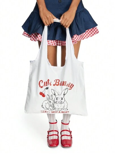 ROMWE Kawaii Cloth Tote Handbag Shoulder Bag With Large Capacity, Korean Style For Women - White - View 1